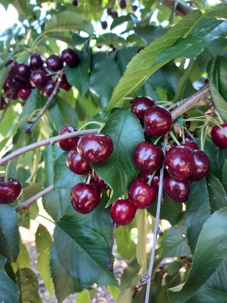 We have several varieties of sweet cherries. First up are the Coral Champagne and Brooks usually ripe around mid May, followed by Rainiers, Helens and Bings!